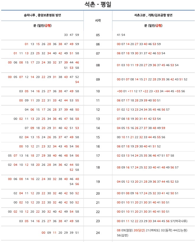 급행시간표는 해당 역마다 도착시간이 모두 다르므로 서울시 메트로 9호선 홈페이지를 통해 현재 위치한 역을 검색하시면 세밀한 급행 시간을 확인하실 수 있어요.