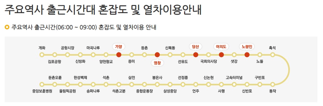 9호선의 혼잡도는 출근시간인 오전 7시30분부터 오전 8시 30분까지가 가장 붐비는데, 홈페이지에 들어가면 어떠한 역이 어떠한 시간대에 제일 붐비는지 알 수가 있다고 합니다.