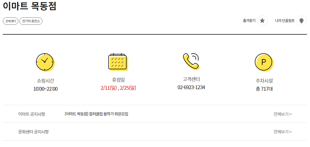 이마트 목동점 02월 11일 , 25일 02-6923-1234