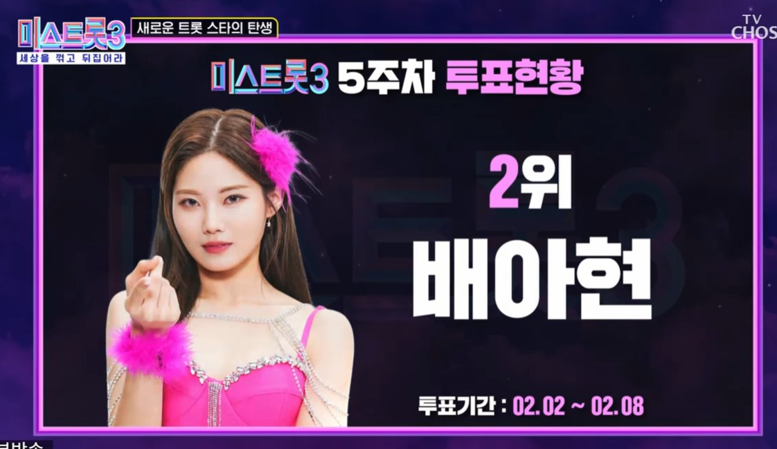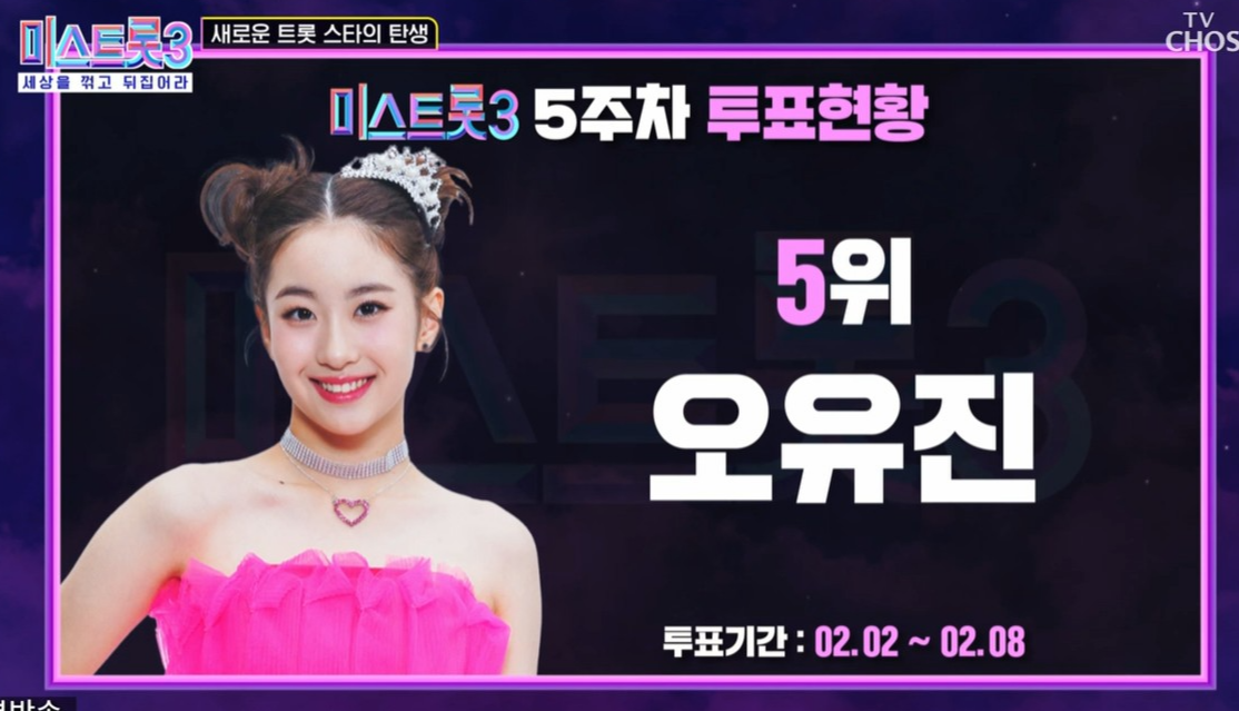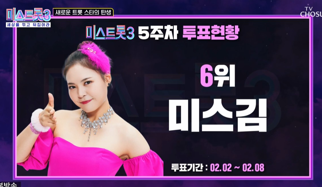2월 8일까지 방송이 진행되면서 미스트롯3 투표는 5주차까지 결과가 발표되었고, 현재 6주차 투표가 진행되고 있습니다.