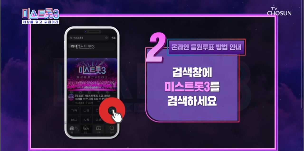미스트롯3 공식 방송에서 안내해주고 있는 대국민 응원 투표 방법입니다.