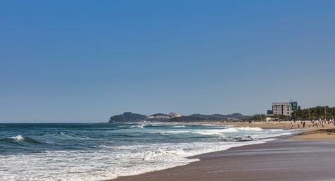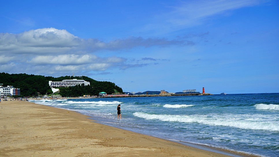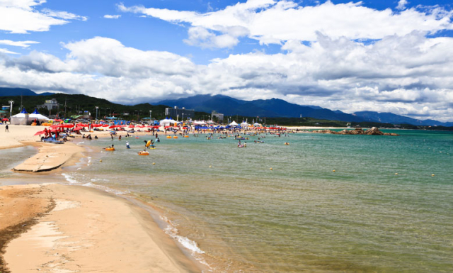 해변으로 스킨스쿠버 장소로도 각광받고 있습니다. 해변가에는 카페와 맛집,등이 가득해서 많은 젊은이들이 찾아오는 핫한 공간이 되었죠. 인근에 죽도정 전망대와 인구항 등의 볼거리가 있고, 동산항에서는 바다낚시를 할 수 있다고 합니다.