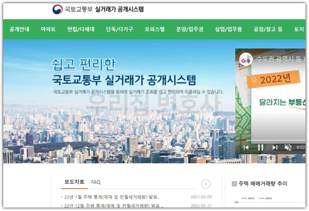 매매 실거래 공개는 2006년 1월부터 부동산 거래신고 및 주택거래신결정할 한 주택과 오피스텔, 토지, 상업 또는 업무용 목적의 부동산과 2007년 6월 29일 향후에 체결된 아파트 및 분양, 입주권을 대상으로 하고 있는데 주택은 크기가 넓다 보니 아파트, 연립/다세대, 단독/다가구를 기준으로 하고요.